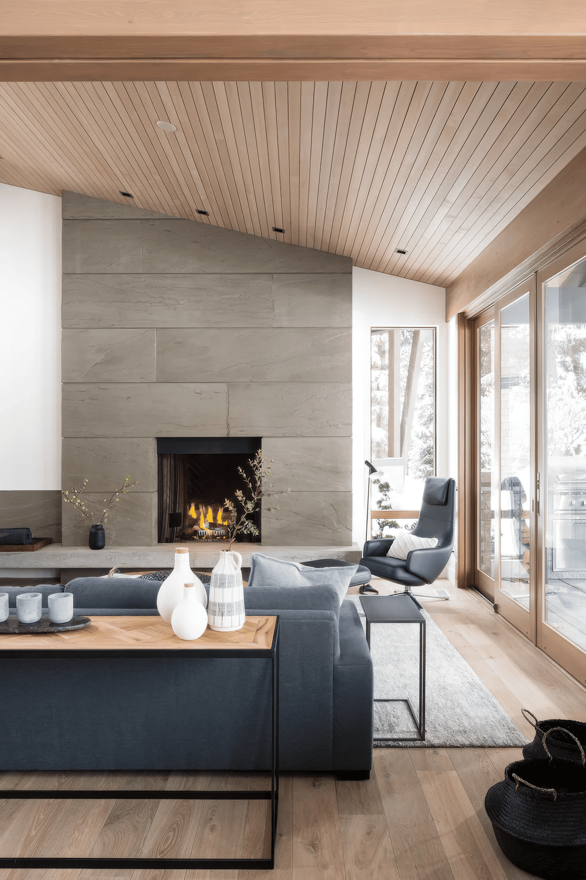 This mountain retreat blends contemporary alpine design with natural warmth, using a palette of soft grey Hemlock, and local Squamish stone to create a refined yet grounded aesthetic. The home balances modern detailing with rustic textures, achieving a look that feels both sophisticated and deeply connected to its rugged surroundings.
