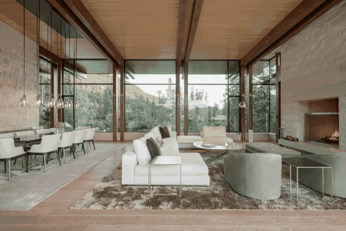 Sitting on a large site with a steep drop off to one side, this home claims expansive views over the valley and lake below. Featuring grand dramatic spaces with luxurious finishes. Striking marble and stone are balanced and warmed with highly refined Wood beams and ceilings.